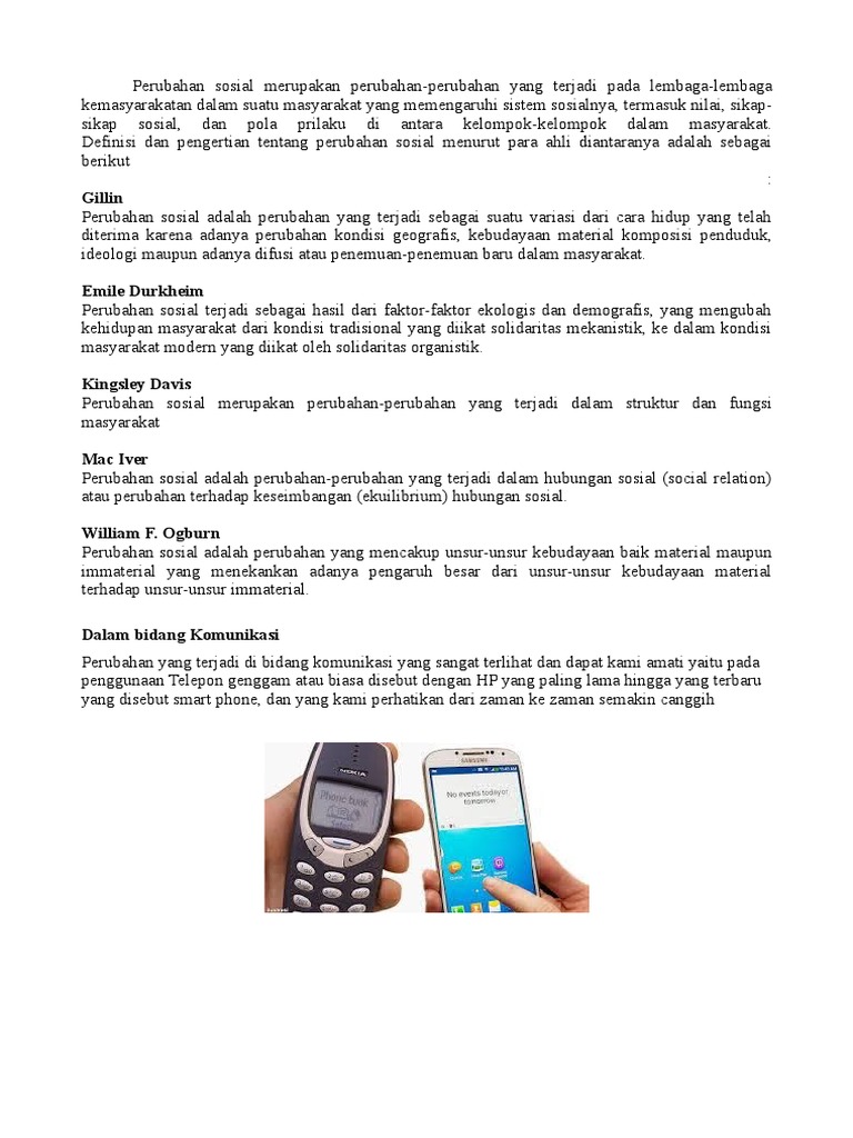 Stabilitas sistem sosial menggambarkan kepentingan atas lingkungan kerja yang positif dan menguatkan, serta kepentingan atas konflik dan perubahan yang diatur secara efektif. Kita sebagai individu senantiasa mengalami perubahan baik secara fisik maupun intelektualitas. Apakah anda bingung terkait pengertian dan. Perubahan sosial budaya merupakan gejala umum yang terjadi sepanjang masa dalam setiap masyarakat. Salah satu contoh perubahan sosial budaya yaitu penggunaan media digital dalam kehidupan sosial.